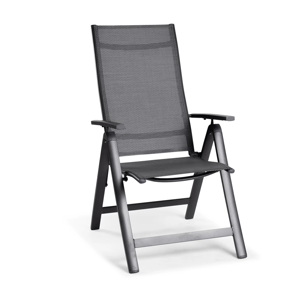 De Avento standenstoel van Tierra Outdoor is een tijdloze aanwinst door het neutrale en degelijke design. Tuinstoel Avento heeft een strak aluminium frame wat de stoel lekker licht van gewicht maakt. De comfortabele textileen zitting is uitgevoerd in de kleur grijs en is aan de hand van de leuning gemakkelijk te verstellen naar de gewenste stand. Dit zorgt voor een optimaal zitcomfort en maakt deze tuinstoel ideaal om ontspannen te kunnen tafelen. Als je bent uitgegeten zet je gewoon de rugleuning naar achteren en uitbuiken maar! De Avento tuinstoel combineer je met eettafel Bea voor een sfeervol en rustig geheel.