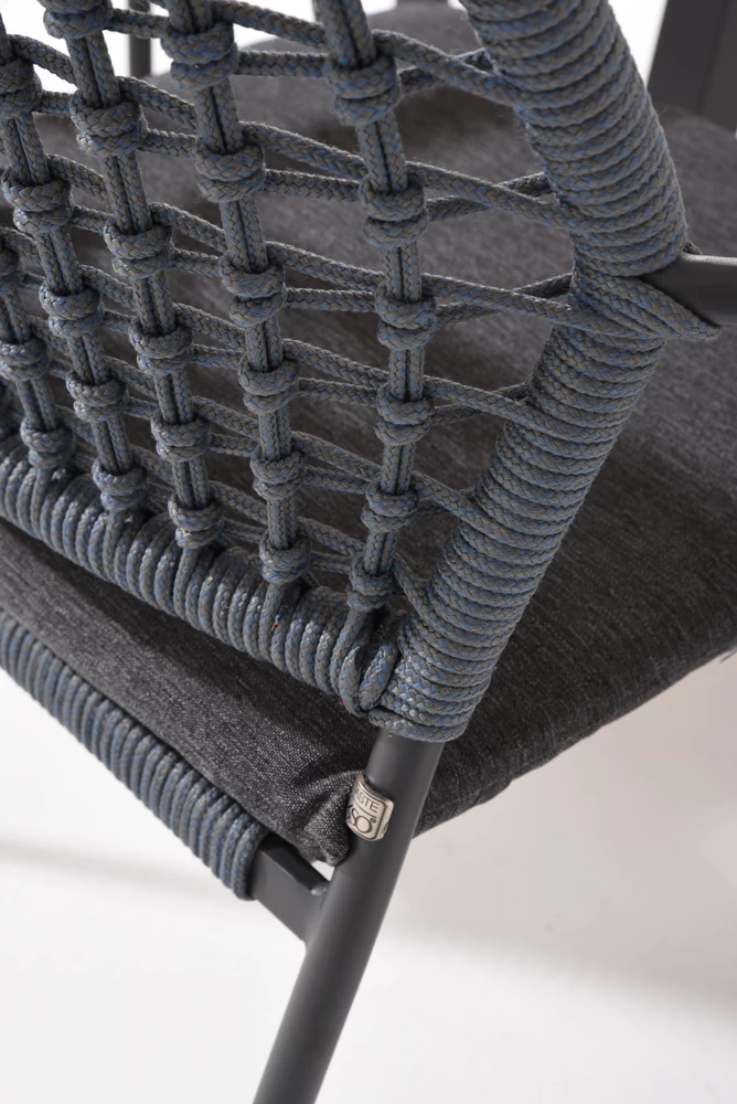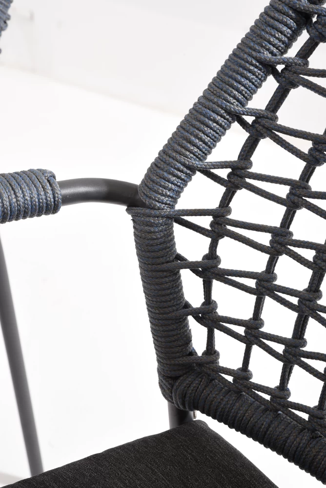 Taste 4SO stapelbare Barista tuinstoel inclusief zitkussen met blauw rope en antraciet RVS frame.