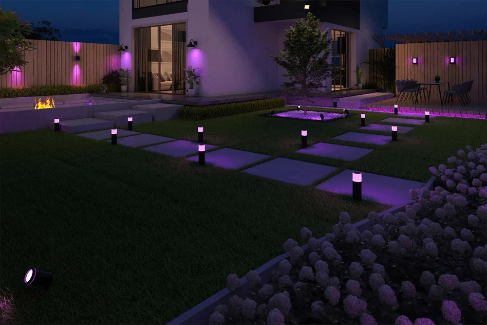 Verlicht je tuin met warm wit licht voor lange (zomer)avonden of kies uit 100+ kleuropties die bij jouw stemming passen. Ervaar een volledig geïntegreerd slim systeem dat is gebaseerd op het Bluetooth Mesh protocol.