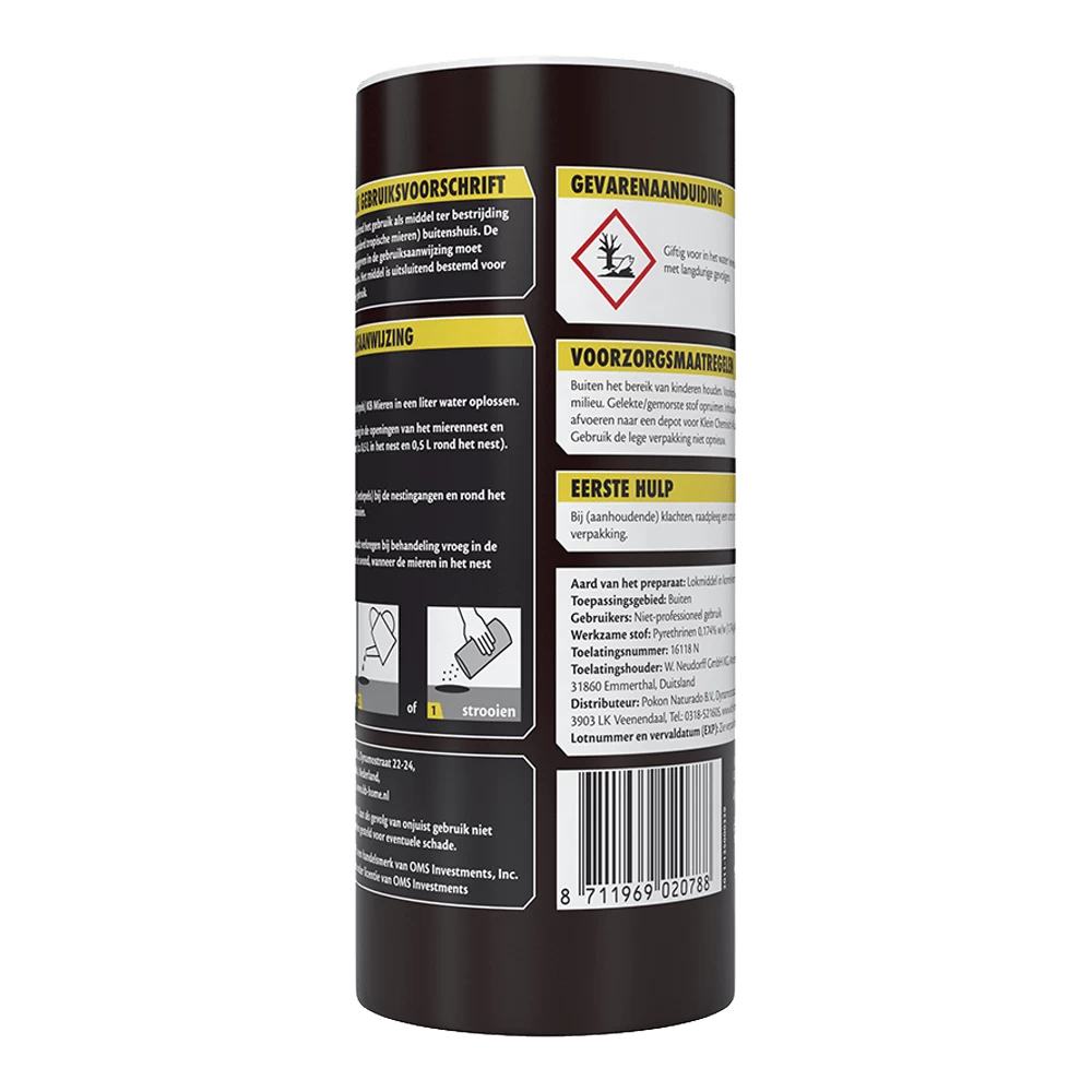 KB Mierenpoeder Wateroplosbaar is een snelle, effectieve en verantwoorde oplossing tegen mieren en hun nesten. Met deze mierenpoeder voor buitenshuis wordt kan in één keer een volledig nest worden vernietigd. Dit kan op twee manieren: strooien of gieten. Het werkt tot 30 dagen lang en is voldoende voor 20 mierennesten.