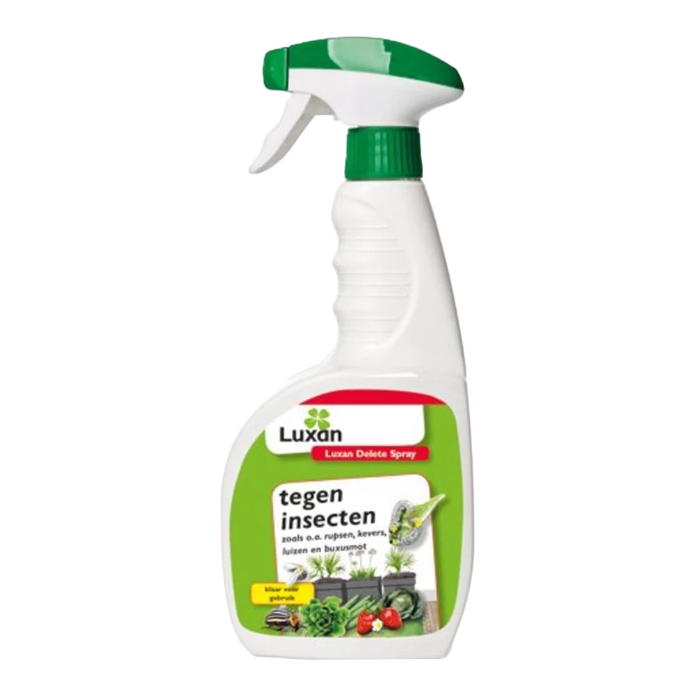 Luxan Delete Spray is klaar voor gebruik. Dit middel is bijzonder goed werkzaam tegen een reeks van bladetende insecten zoals rupsen en kevers. Daarnaast heeft Luxan Delete ook een goede werking op zuigende insecten zoals bladluis, trips en witte vlieg. Het middel werkt snel en is zacht voor het gewas. De nawerking op plantenmateriaal is lang.