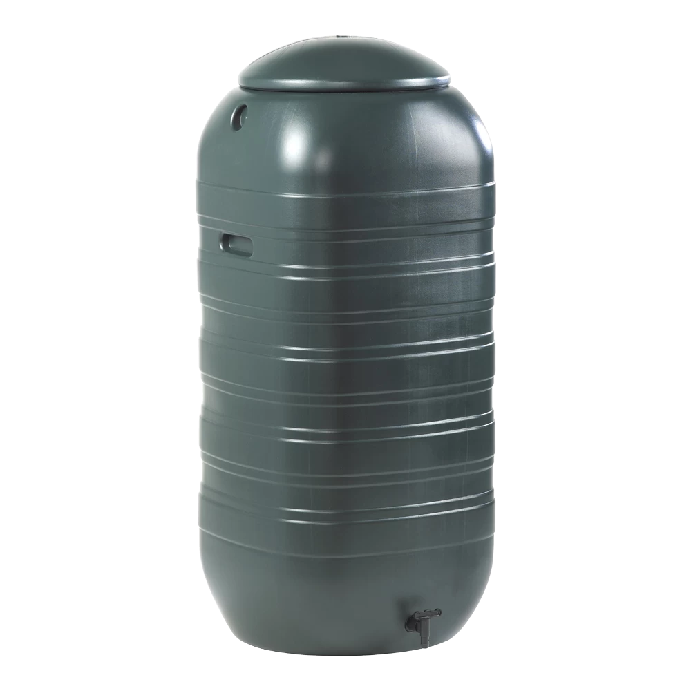 Kunststof regenton 250 L muurmodel (‘slimline’). Deze regenton is gemaakt van uv-bestendig, groen polyethyleen en heeft een kraan om makkelijk emmers en gieters te kunnen vullen. Afmeting: H 121 cm x 54 x 50 cm, inhoud: 250 L.