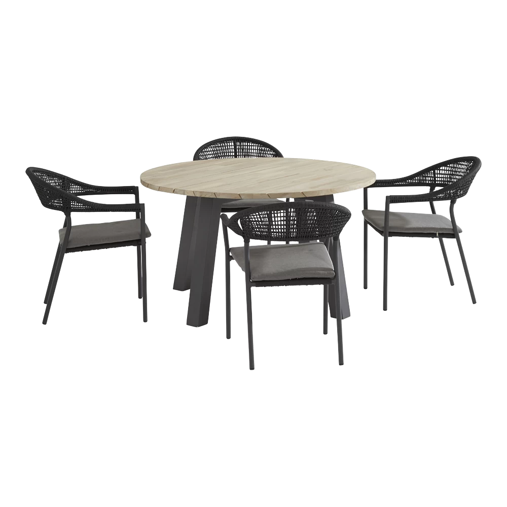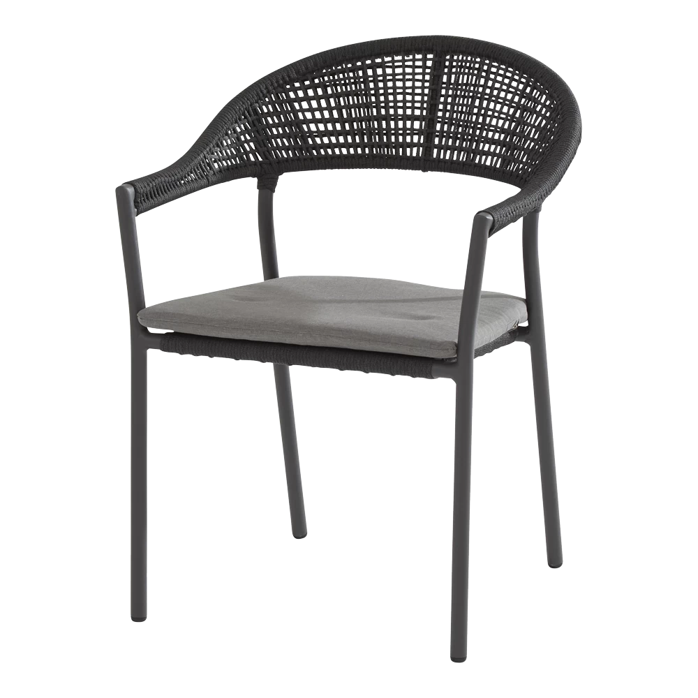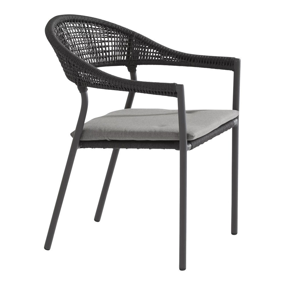 Heerlijk buiten genieten met de Taste by 4 Seasons Outdoor stapelbare Sienna Dining stoel. Deze stijlvolle grijze dining tuinstoel is stapelbaar en heeft een afmeting van 81x62x59cm, waardoor ze niet veel ruimte in beslag nemen om op te bergen. De Sienna dining stoel is gemaakt van RVS en weerbestendig touw. De tuinstoelen van Taste 4SO worden geleverd met 5 jaar garantie en inclusief kussen. Het kussen is gemaakt van hoogwaardig All Weather materiaal, waardoor ze op de stoelen kunnen blijven liggen bij een regenbuitje. Het droogleggen van de kussens raden wij echter aan om een langere levensduur van de kussens te hebben.